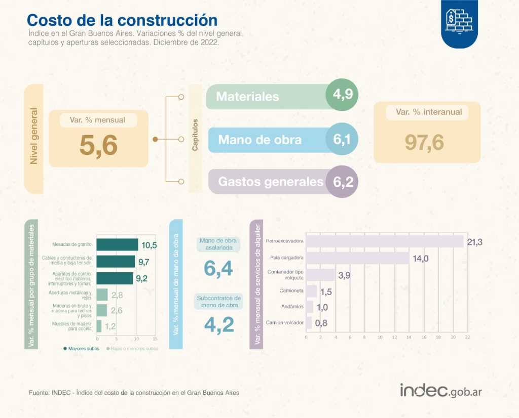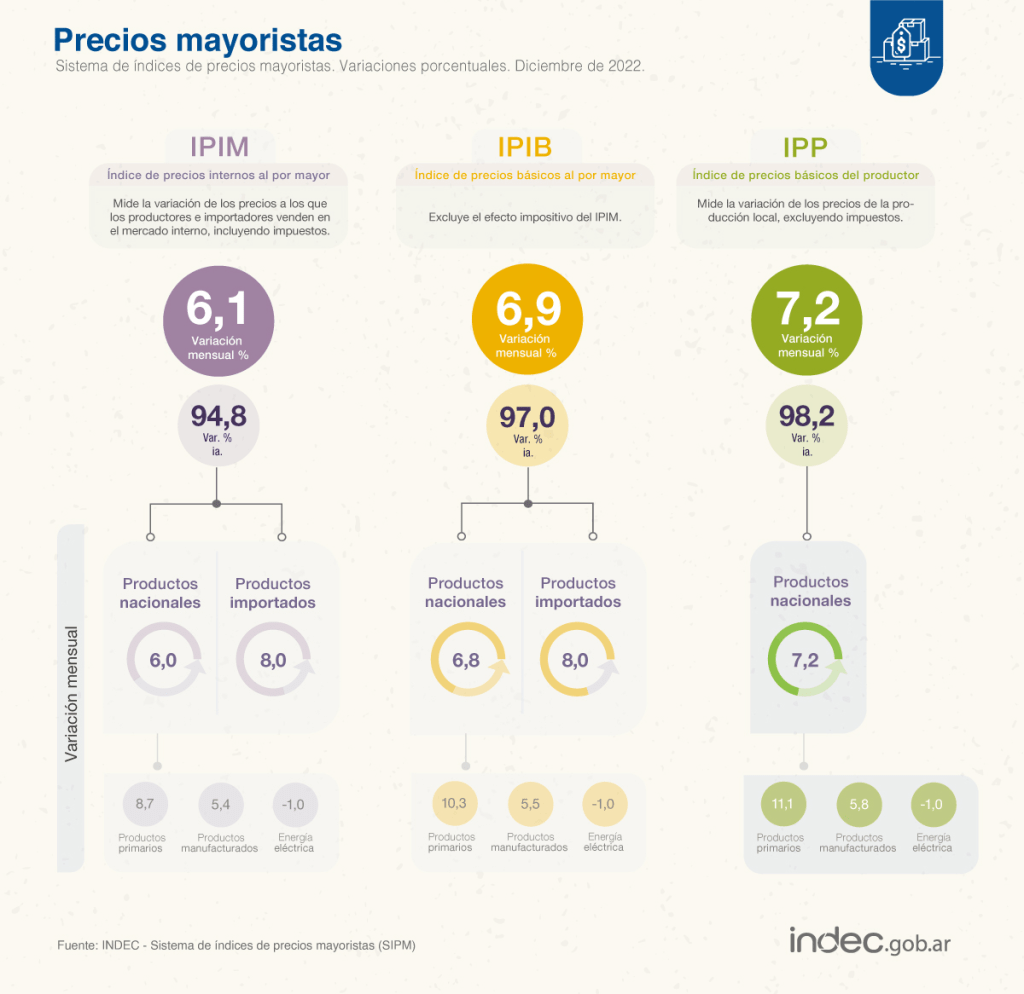 Según el relevamiento del Instituto Nacional de Estadísticas y Censos (INDEC), el Índice de Precios Mayoristas, acumuló durante todo el 2022, una suba del 94,8%, superando incluso la inflación anual.