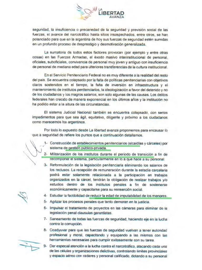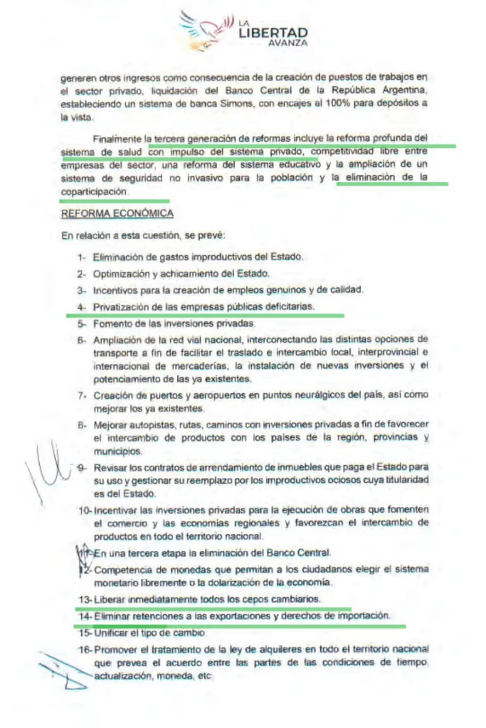 También plantea una reforma previsional, privatización de empresas públicas, reducción de ministerios y eliminación progresiva de planes sociales.