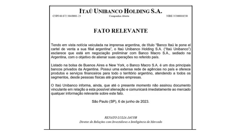La compañía ha anunciado formalmente a la Bolsa de San Pablo que está en negociaciones con el Banco Macro para transferir sus operaciones en el país. Esta medida se suma a la creciente lista de empresas multinacionales que han decidido abandonar Argentina en los últimos años debido a la falta de rentabilidad y las dificultades económicas.