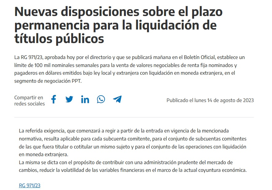 Una vez que se alcancen los 100,000 bonos nominales, incluso si posteriormente se venden, la persona quedará excluida de nuevas transacciones hasta la semana siguiente. Esta restricción tiene como objetivo principal estabilizar el mercado financiero y garantizar el funcionamiento normal de la economía, manteniendo a raya los movimientos especulativos que puedan surgir en torno a los llamados «dólares financieros».
