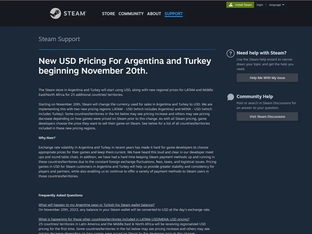 La plataforma de videojuegos Steam ha anunciado un cambio significativo en su política de precios, dejando de fijar precios en pesos argentinos y liras turcas a partir del 20 de noviembre. Esto se debe a la constante volatilidad y cambios en las regulaciones que han dificultado mantener precios coherentes en moneda local. El comunicado de la empresa explicó que la decisión se tomó en respuesta a las dificultades experimentadas por los desarrolladores para establecer precios adecuados y mantener los métodos de pago operativos debido a las fluctuaciones de divisas, tasas e impuestos.