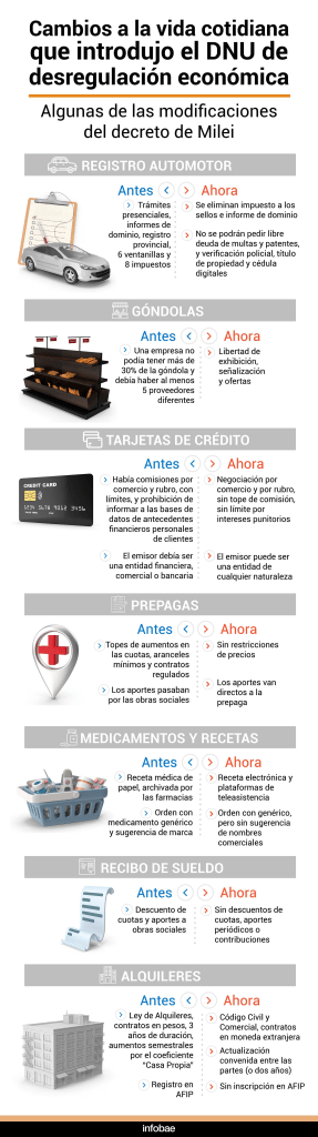 El Decreto de Necesidad y Urgencia (DNU) 70/2023, liderado por Javier Milei, entró en vigencia el 29 de diciembre de 2023 y establece una amplia reforma en diversos sectores económicos y sociales. Este decreto, titulado «Bases para la reconstrucción de la Economía argentina», abarca cambios significativos en 366 artículos que modifican leyes existentes y establecen nuevas regulaciones. A continuación, se detallan algunos puntos clave: