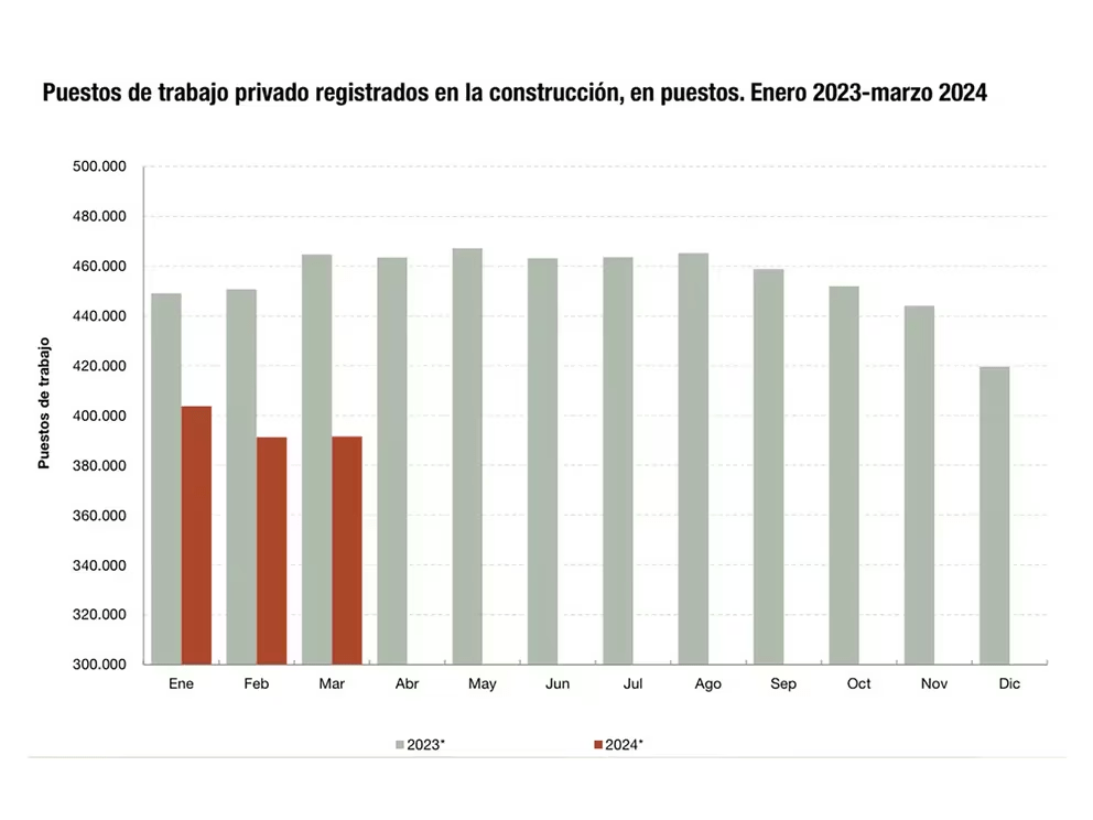 - Caída Interanual: Comparando marzo de 2023 con marzo de 2024, el empleo formal en la construcción disminuyó un 15.7%, de 464,738 a 391,637 trabajadores, una reducción de 73,101 empleos.