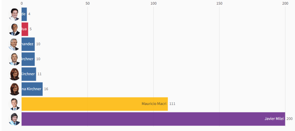 - Mauricio Macri: Tardó 111 días en aprobar su primera ley, referente al pago a los holdouts.