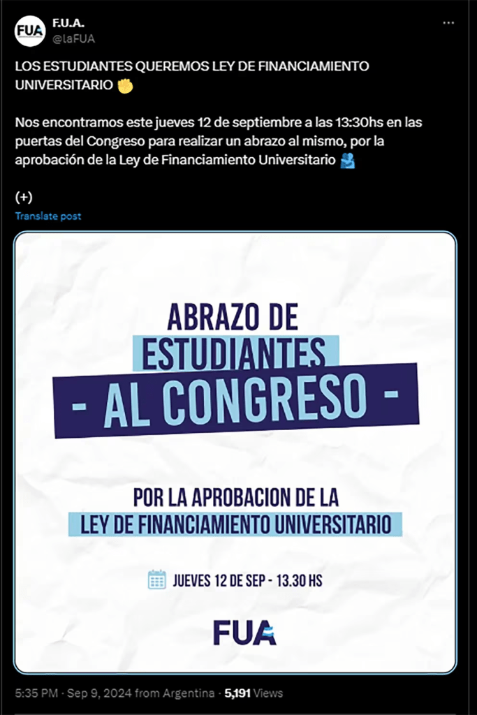 En paralelo a la marcha, la Federación Universitaria Argentina (FUA) ha convocado a un abrazo simbólico al Congreso para sumar su apoyo a los reclamos de los docentes. La situación se ha agravado debido a la falta de avances en la negociación salarial con el Gobierno, lo que ha resultado en un paro de 48 horas que afecta a 61 universidades públicas en todo el país, y que se suma a una serie de protestas y movilizaciones que buscan presionar a las autoridades para lograr una solución.