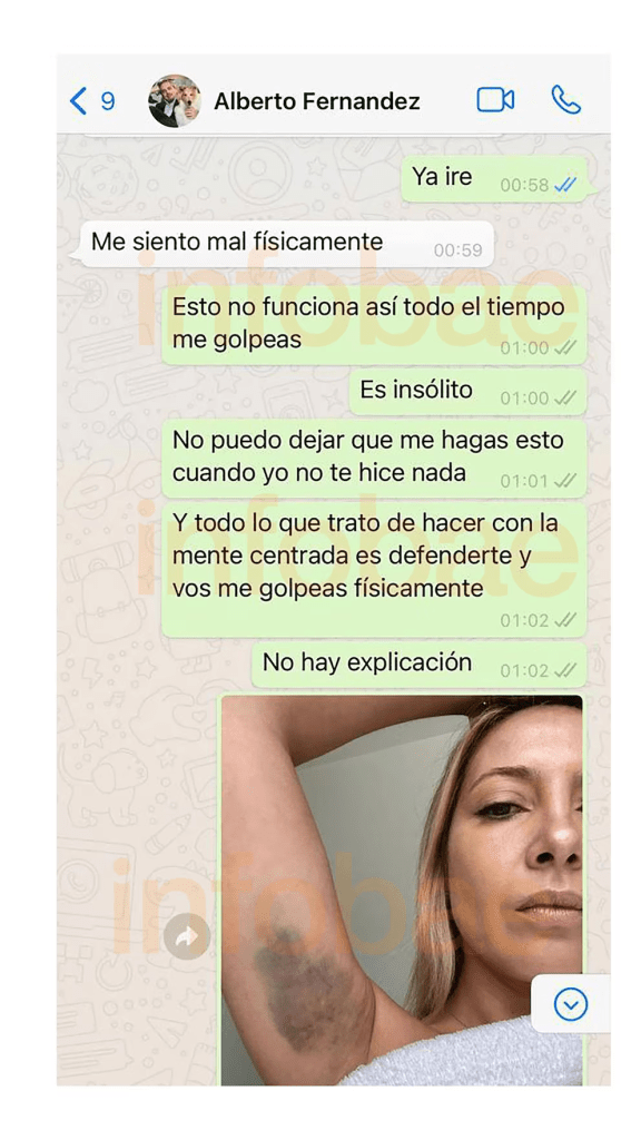 Además de los chats, se han presentado fotografías que muestran a Yañez con moretones, y ella misma se queja en los mensajes de ser golpeada repetidamente. A lo largo de la conversación, se observa cómo Yañez se siente atrapada en un ciclo de violencia y manipulación, mientras que Fernández intenta evadir la responsabilidad de sus acciones.