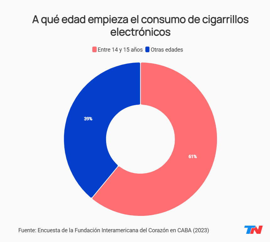 - El 61% de los adolescentes comenzó a vapear entre los 14 y 15 años.