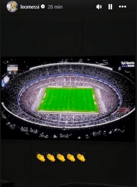 El capitán de la Selección no dejó de alentar a sus compañeros y compartió en sus redes sociales un video del Estadio Monumental repleto, acompañado de emojis de aplausos.