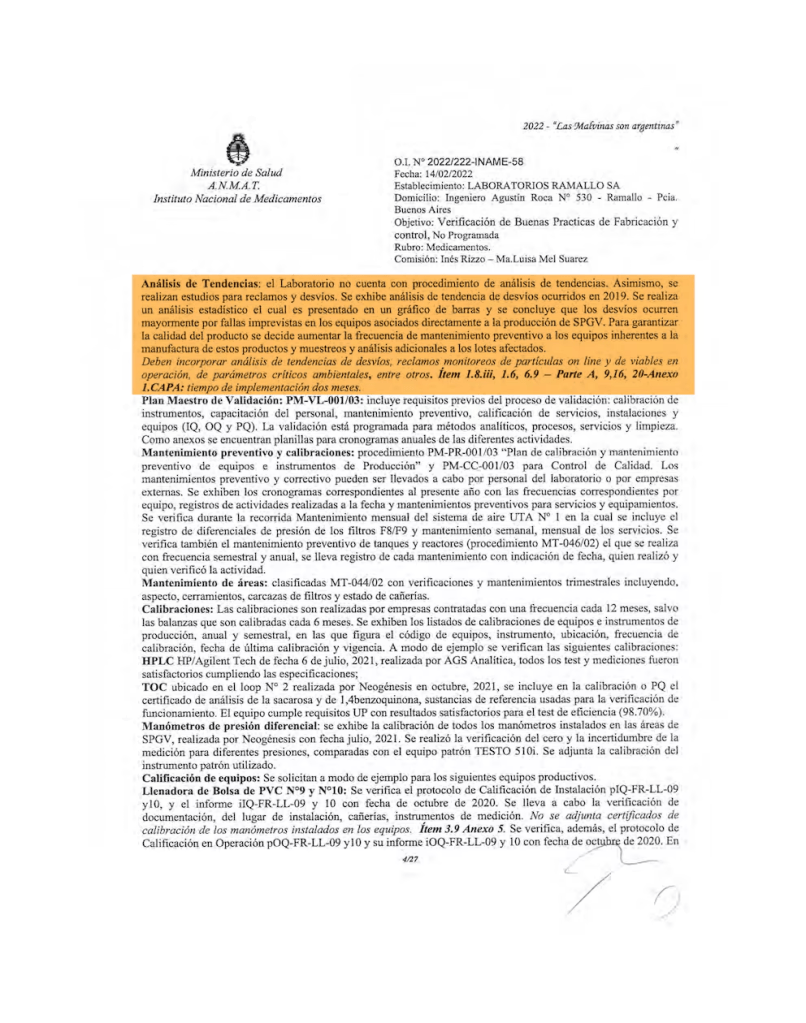 Documentación a la que accedió la justicia muestra que en 2019 se recomendó la clausura del laboratorio, aunque la medida se redujo a una simple inhibición. En 2022, con Gabriela Mantecón Fumadó al frente del Instituto Nacional de Medicamentos (INAME), el caso fue cerrado pese a nuevas irregularidades. En diciembre de 2024, una inspección “no programada” detectó fallas graves en control de calidad, procesos de validación y documentación. Sin embargo, la clausura se demoró hasta febrero de 2025, cuando el lote contaminado ya había sido producido.