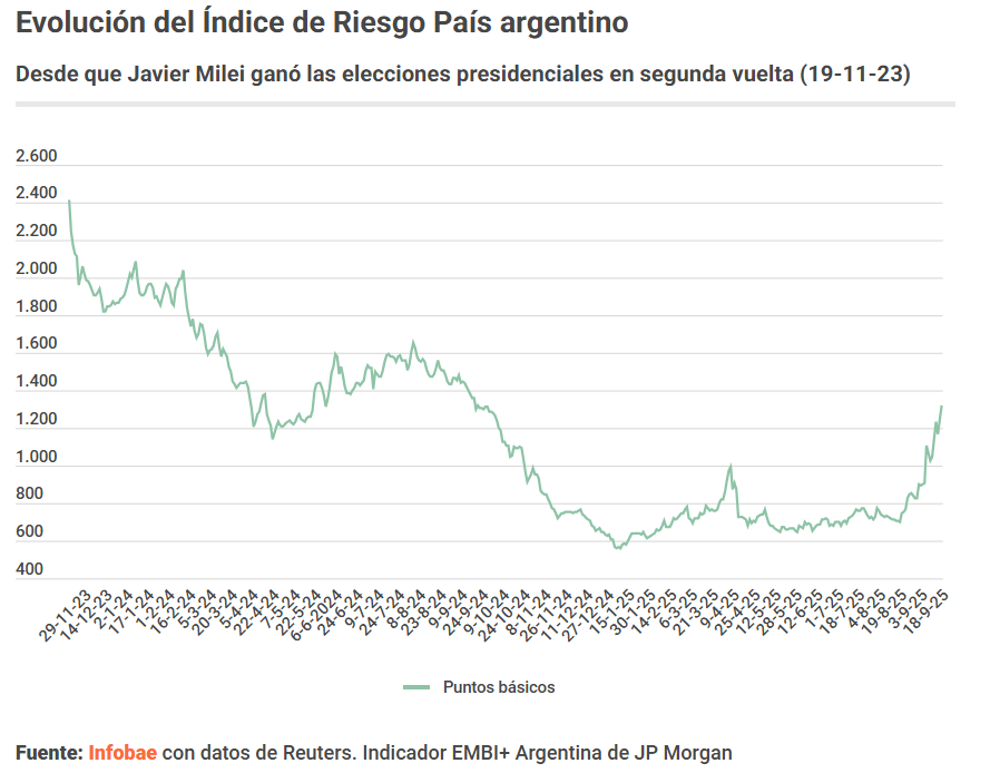Los bonos argentinos en dólares abrieron la jornada del jueves con caídas superiores al 2% y el riesgo país avanzó hasta los 1.311 puntos básicos, en un contexto de creciente incertidumbre política tras la derrota del oficialismo en la Cámara de Diputados.