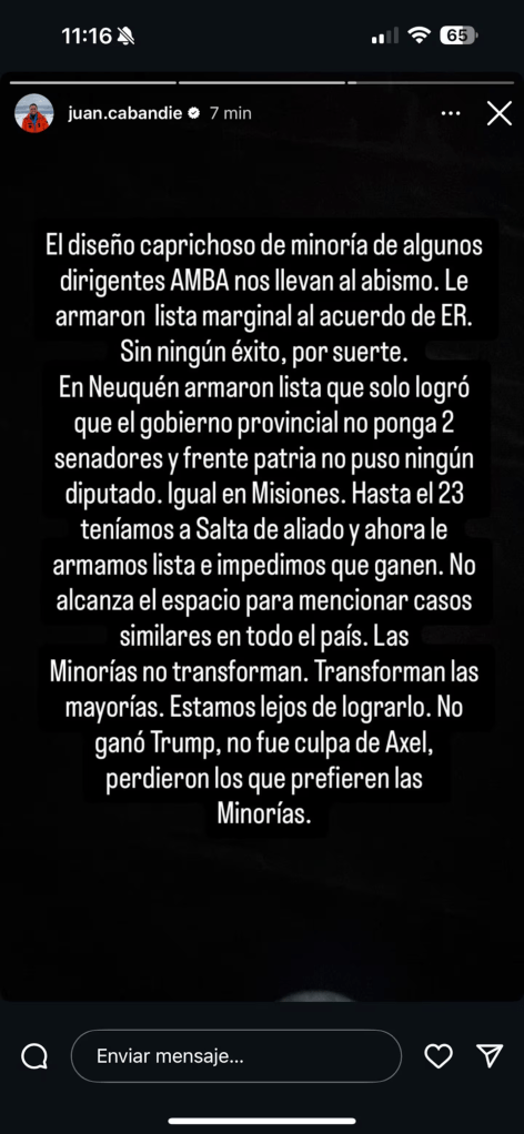 En medio de la autocrítica, surgieron también mensajes más duros. El exministro Juan Cabandié apuntó en redes contra “los que arman listas desde CABA”, a quienes responsabilizó por el “diseño caprichoso” de las candidaturas y por haber llevado al peronismo “al abismo”. Reclamó reconstruir un proyecto nacional con carácter federal y representantes provinciales.