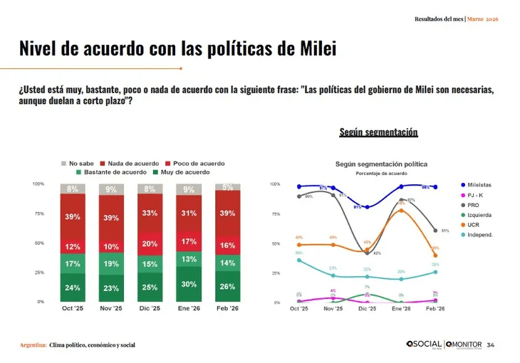 Por su parte, Pulso Research indica que más de la mitad de los encuestados considera incorrecto el rumbo del Gobierno, mientras que una minoría lo evalúa de forma positiva. También se incrementa la percepción de que el ajuste impacta de manera amplia en la sociedad.